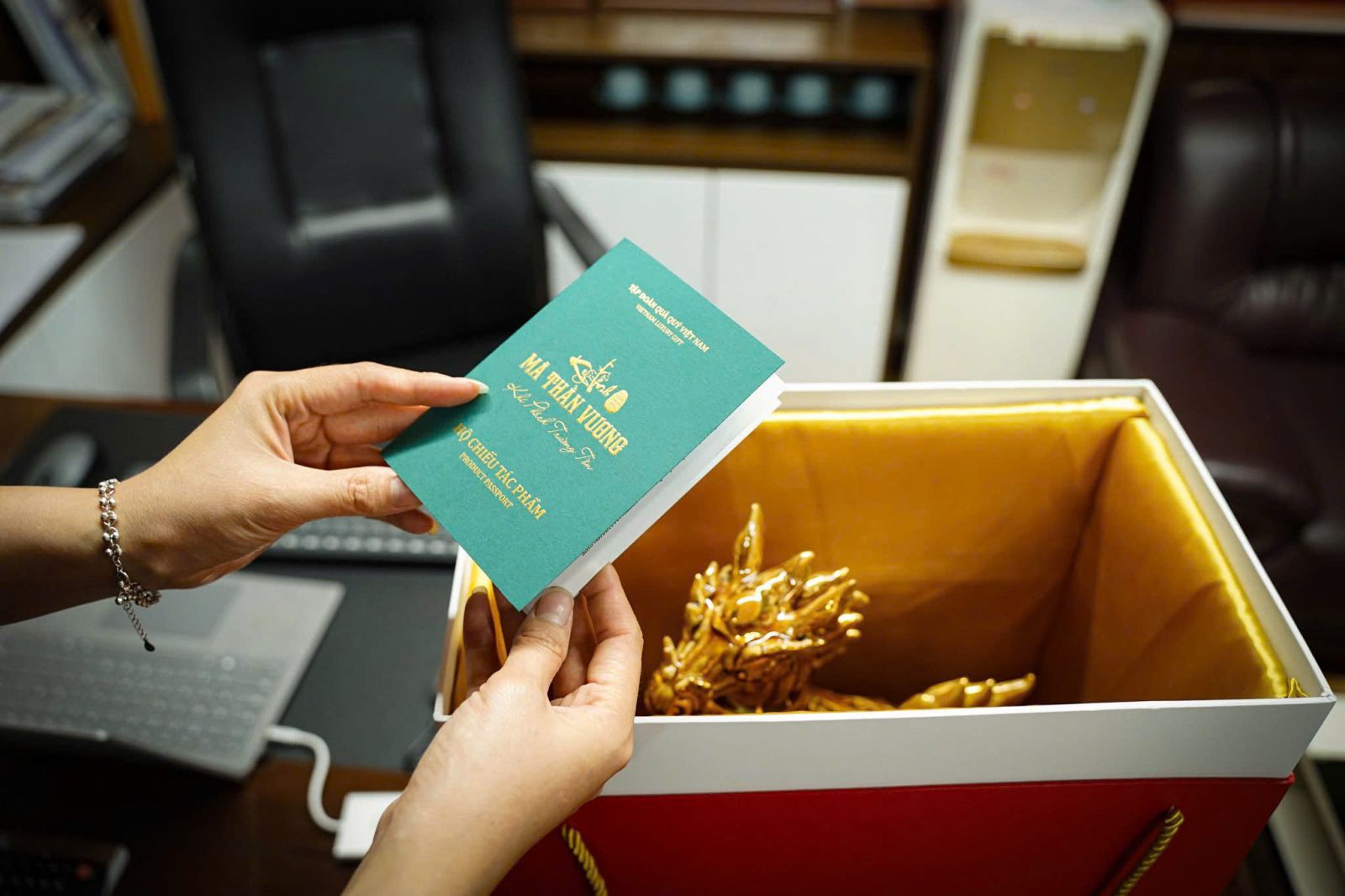 Mỗi tác phẩm của King Gold Art đều đi kèm hộp đựng sang trọng, lớp mica bảo vệ, túi xách cao cấp, giấy chứng nhận và giấy bảo hành đầy đủ. Đây là minh chứng cho sự chuyên nghiệp, uy tín và cam kết chất lượng của thương hiệu trong từng sản phẩm.