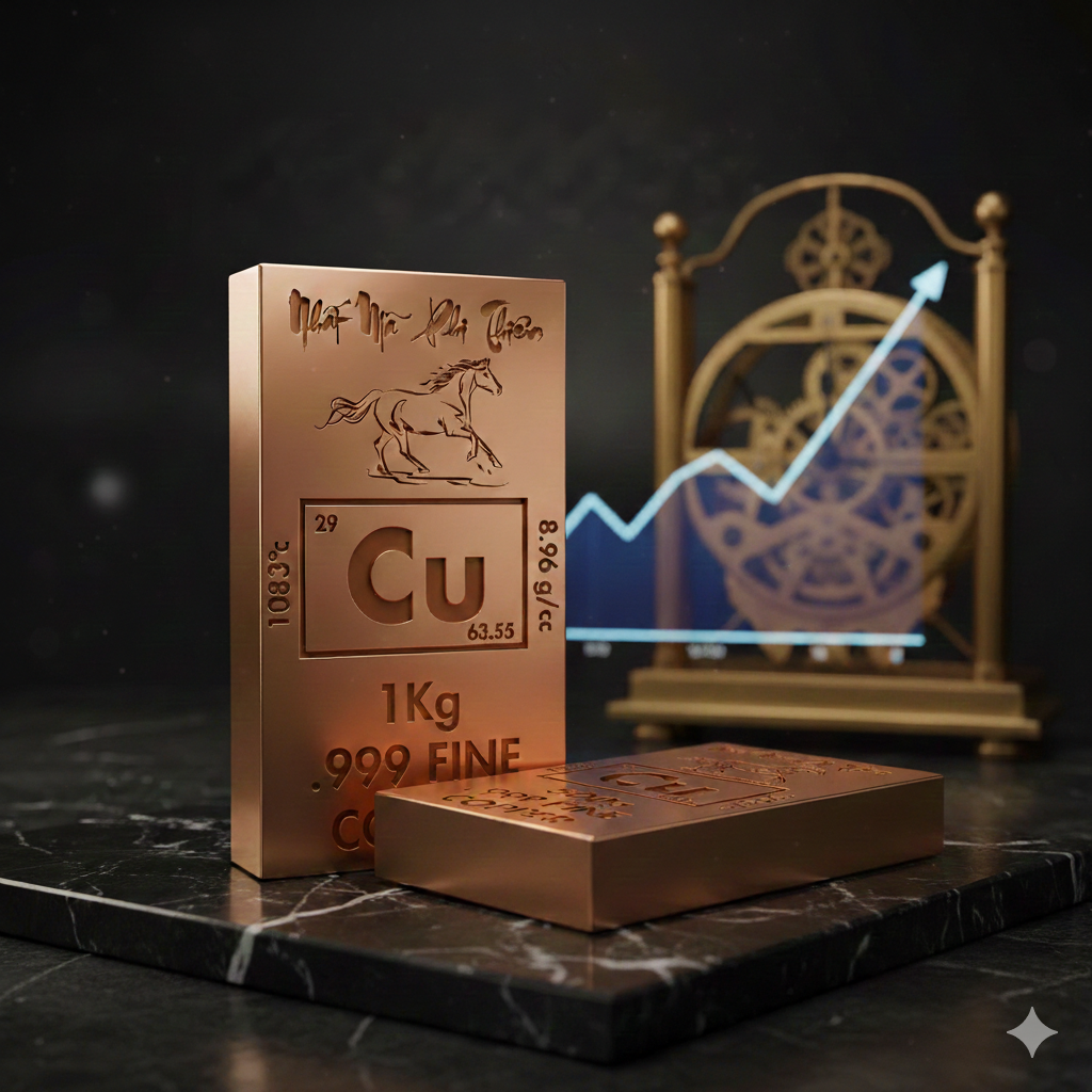 Các thỏi đồng được đúc từ đồng 999.9, đạt độ tinh khiết gần như tuyệt đối, bề mặt ánh đỏ tự nhiên, sắc kim sâu và bền màu theo thời gian. Mỗi sản phẩm đều đi kèm giấy kiểm định rõ ràng, xác nhận hàm lượng và trọng lượng, thể hiện sự minh bạch, chuẩn mực và uy tín trong từng chi tiết.